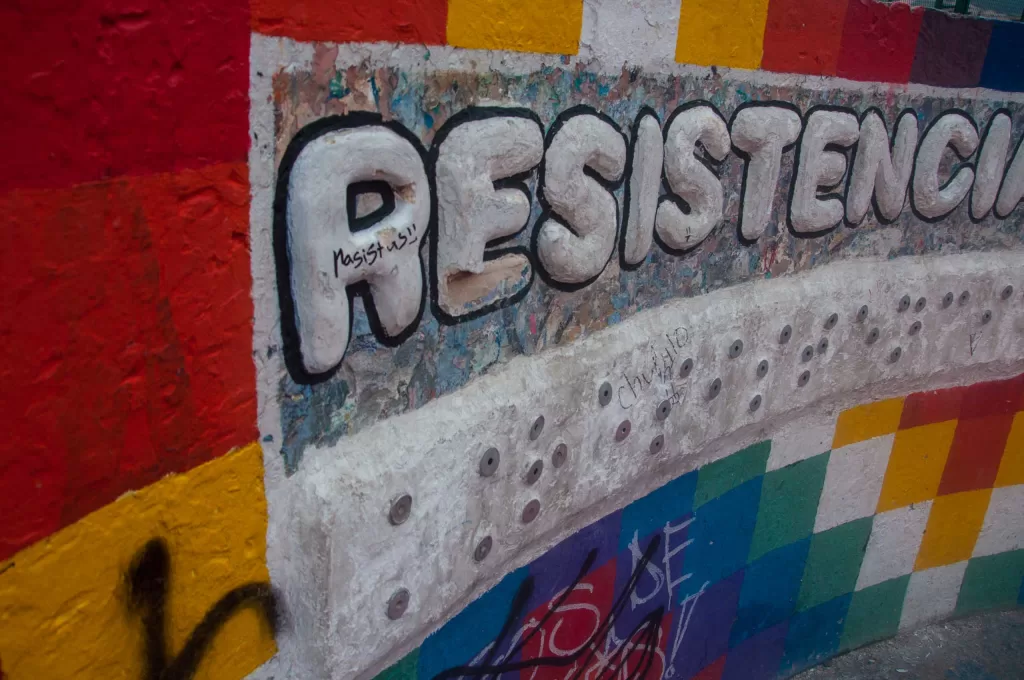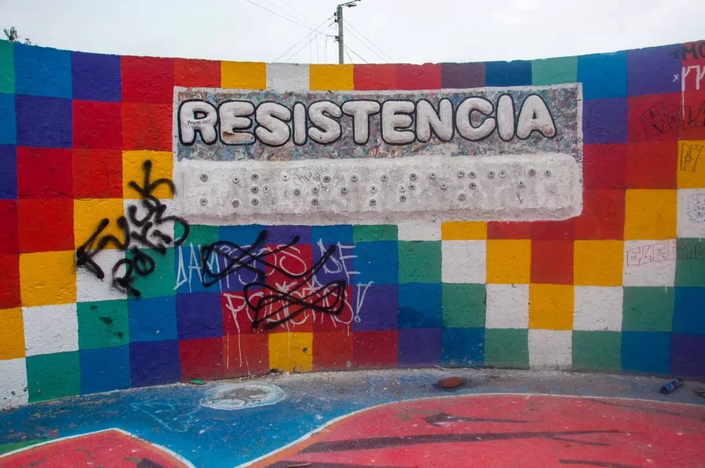 Además, “una resistencia respaldada por la bandera whipala, la de los pueblos originarios de América Latina”. Y es que “como artistas o parte del arte, entendemos que debemos pensar nuestras responsabilidades en las causas sociales y fue así como decidimos entre varios hacer este mural”.