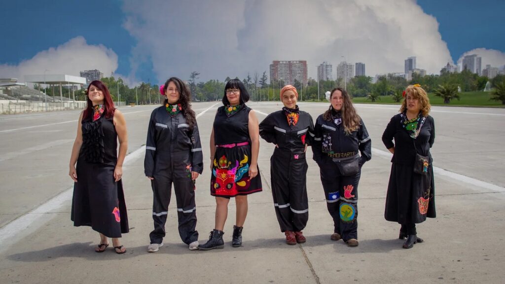 La colectiva Memorarte: Arpilleras Urbanas nació en 2015 en la comuna de Pedro Aguirre Cerda en Santiago, Chile, y ha desarrollado un sello particular bajo el lema ‘Bordar para Incidir’ en su trabajo con lienzos bordados en gran formato que accionan en marchas y en espacios públicos en la calle. Foto: Idartes.