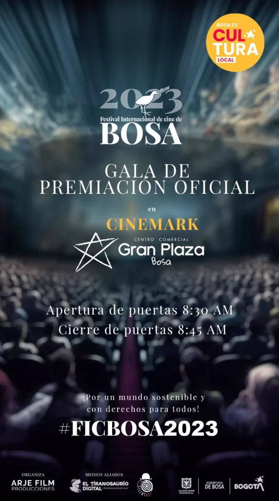 Ya está lista la programación oficial del Festival Internacional de Cine de Bosa, FICBosa. Un evento gratuito que podrán disfrutar en la Plaza Fundacional de la localidad, así como en la terraza y en el Cinemark del Centro Comercial Gran Plaza, los días 22, 23 y 24 de junio.