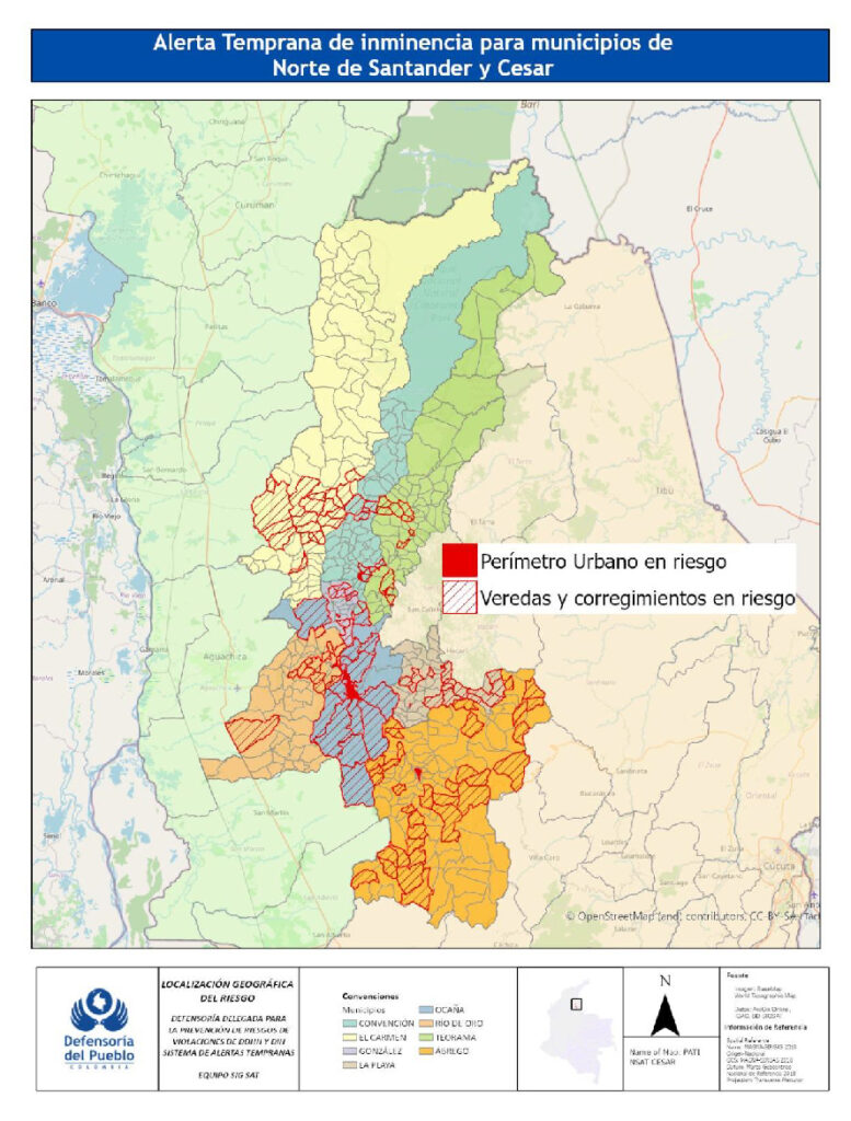 El 15 de noviembre la Defensoría del Pueblo sabía que todo podía ir de mal en peor. Generando una alerta temprana ante el inminente “riesgo que se cierne para diversos sectores poblacionales de municipios que conforman la subregión del Catatumbo en Norte de Santander y el sur del Cesar, debido a las nuevas dinámicas que ha adquirido el conflicto armado interno en los últimos meses en estas zonas”.
