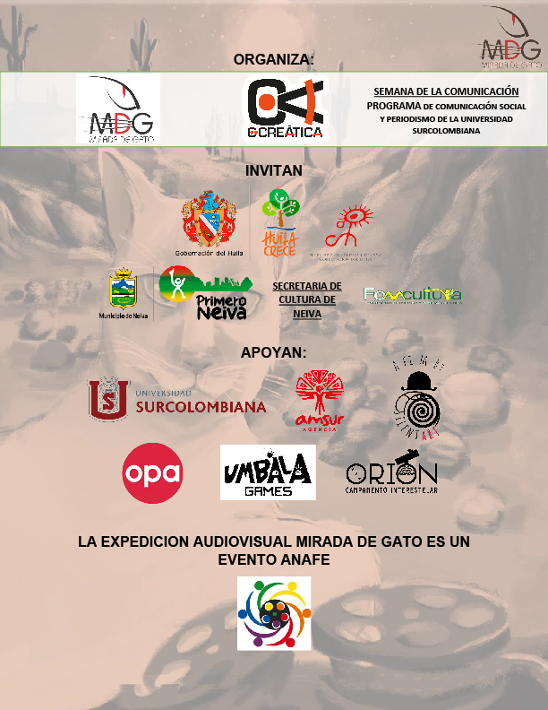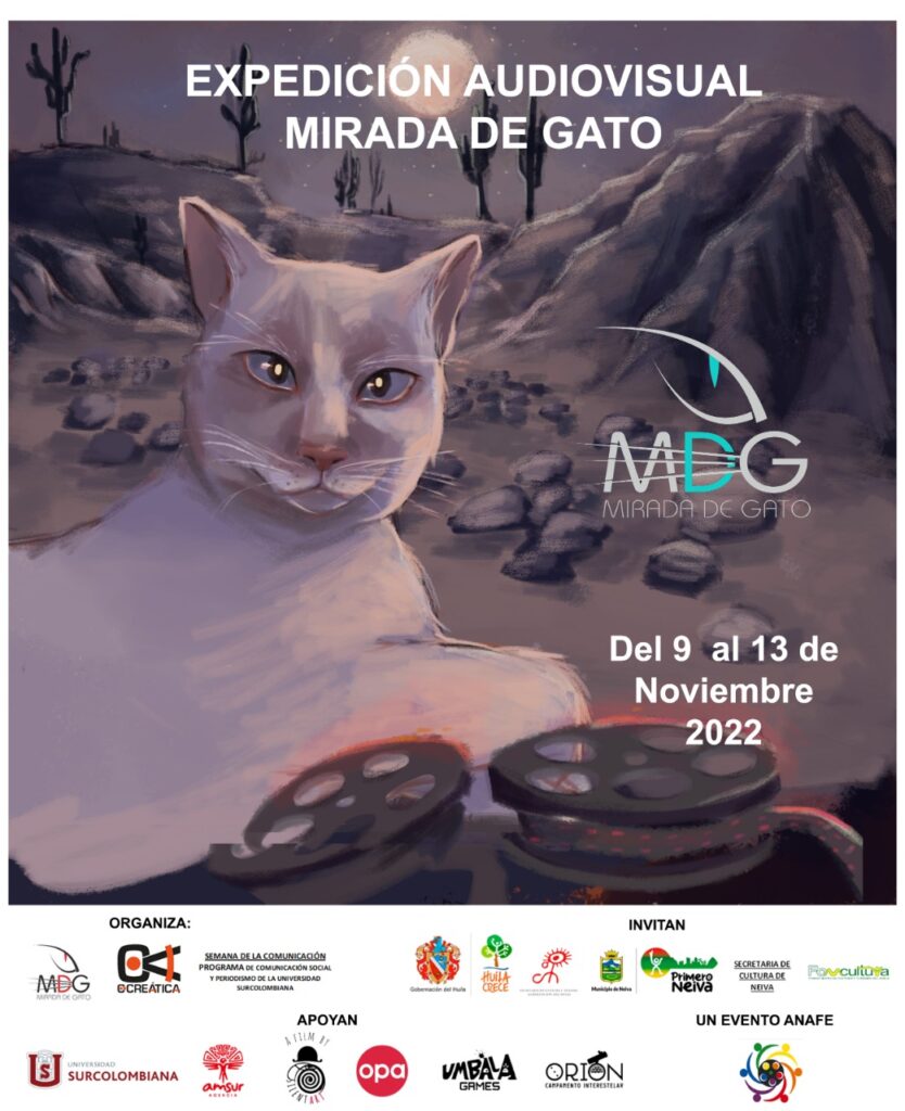 Hasta el domingo 13 de noviembre se desarrollará en el norte del Huila, Mirada de Gato. Un evento cinematográfico organizado por cineastas, estudiantes y docentes vinculados a la Universidad Surcolombiana, que tendrá talleres de cine, muestras de películas, cortometrajes, exposiciones fotográficas y excursiones audiovisuales hacía el Desierto de la Tatacoa y el municipio de Villavieja.