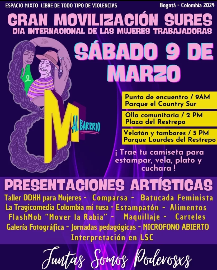 Gran movilización Sures – Día internacional de las mujeres trabajadoras