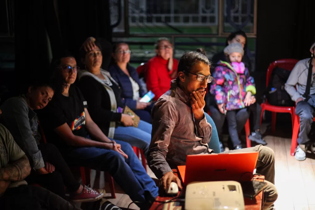 Johan Daza, miembro de la Escuela de Artes Taller Sur durante su taller de emprendimiento popular. Foto: Vidal Romero.
