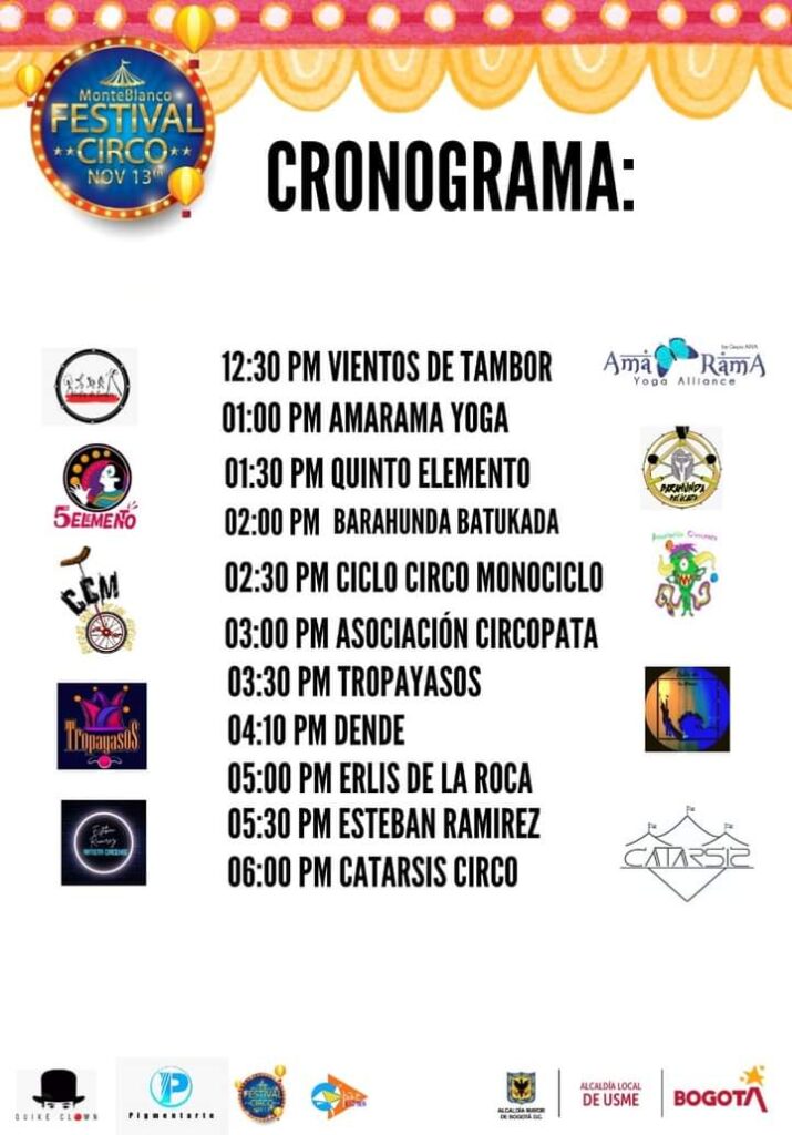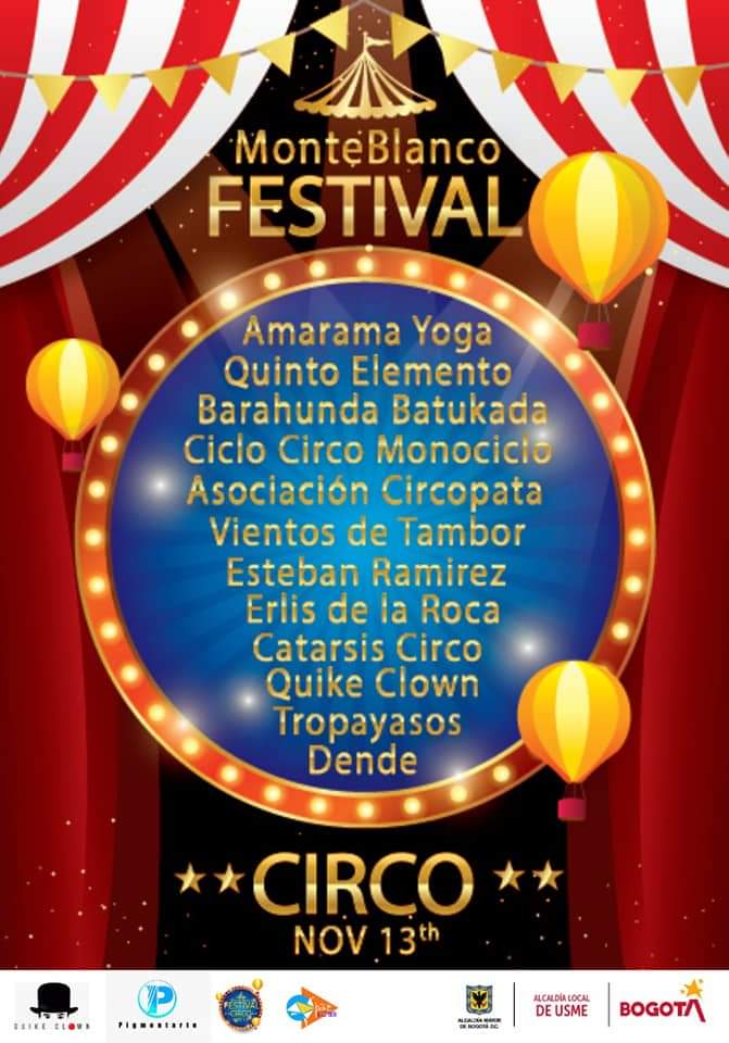 Desde las 12:30 de la tarde se podrán disfrutar las actividades del Festival de Circo en Monteblanco, en la localidad de Usme. Yoga, payasos y música hacen parte de la jornada que se extenderá de manera gratuita hasta la 6 de la tarde.