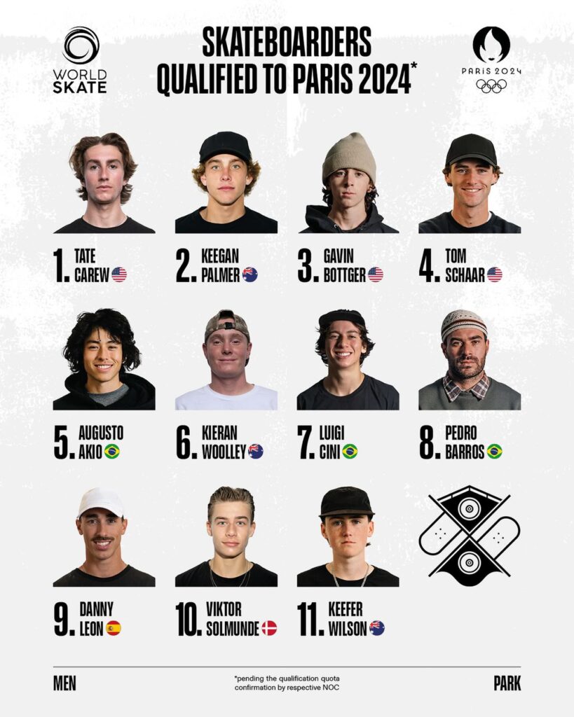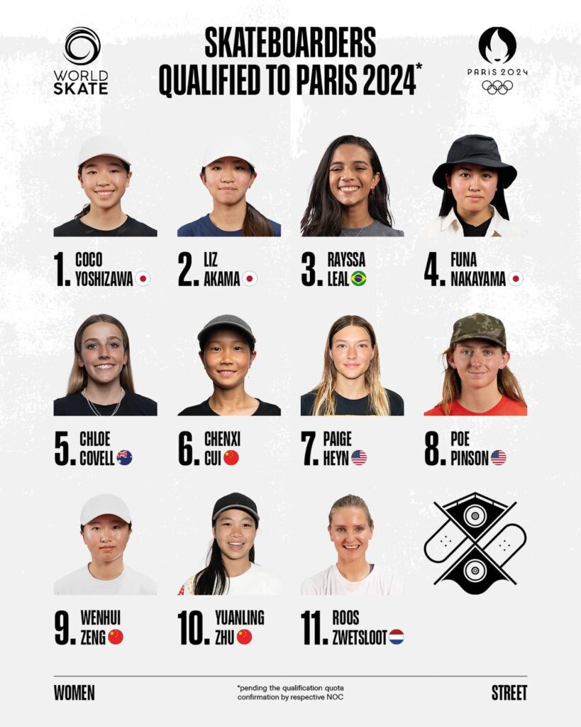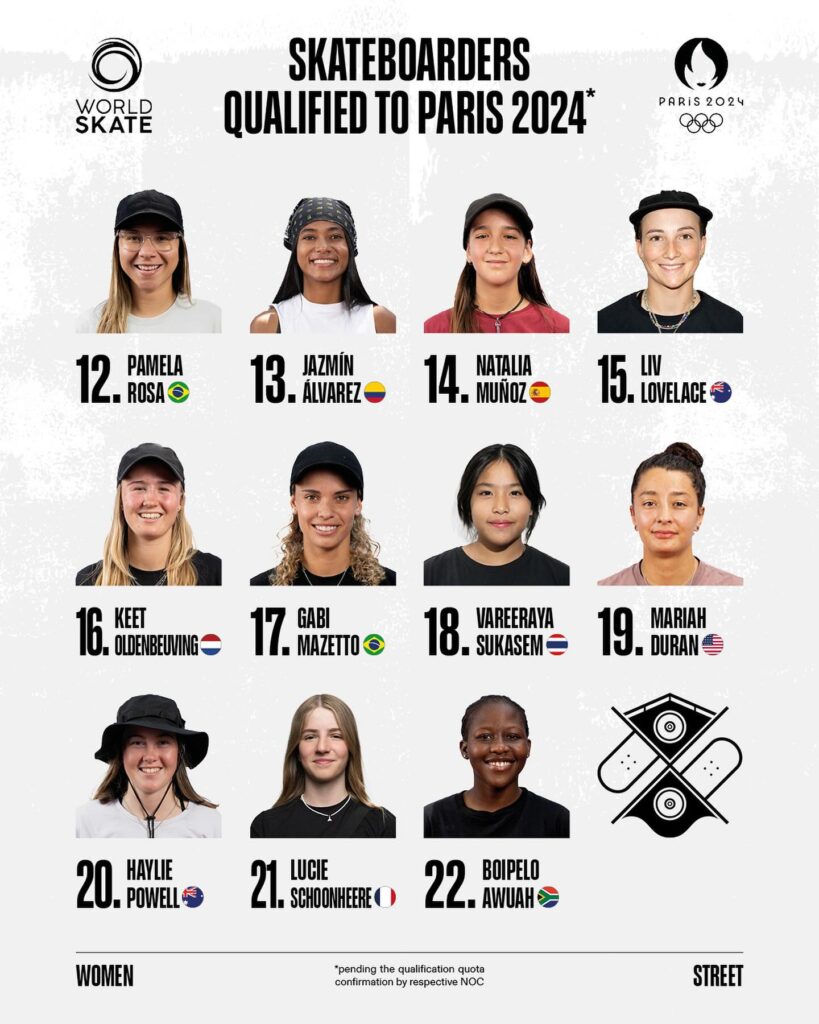 Jazmín Álvarez y Jhancarlos González son los dos patinadores colombianos que competirán en la categoría de skateboarding en los Juegos Olímpicos 2024, que tendrán lugar entre el 26 de julio y el 11 de agosto en París, Francia.
