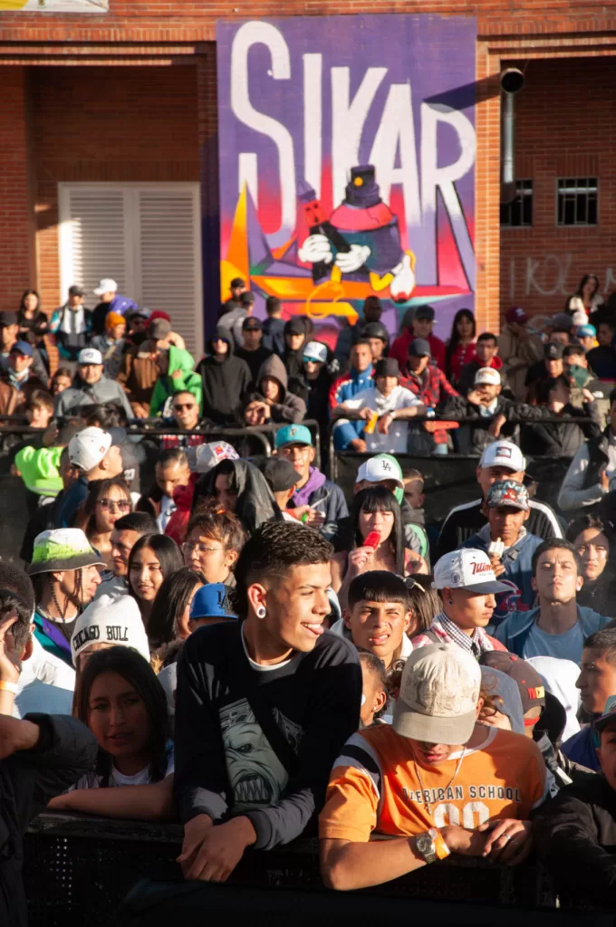El evento arrancó hacía las 10 de la mañana, pero un día antes el grupo de grafiteros seleccionados por el festival habían alistado las paredes del CDC, antes conocido como el Col del Virrey, para pintarlas con latas de aerosol. Un espacio de 40 metros lineales dedicados a los tags de gran formato, block letters, wild style y graffiti orgánico, pero también personajes (characters) icónicos del rap como Ice T y 2pac, entre varios homenajes a la mujer.