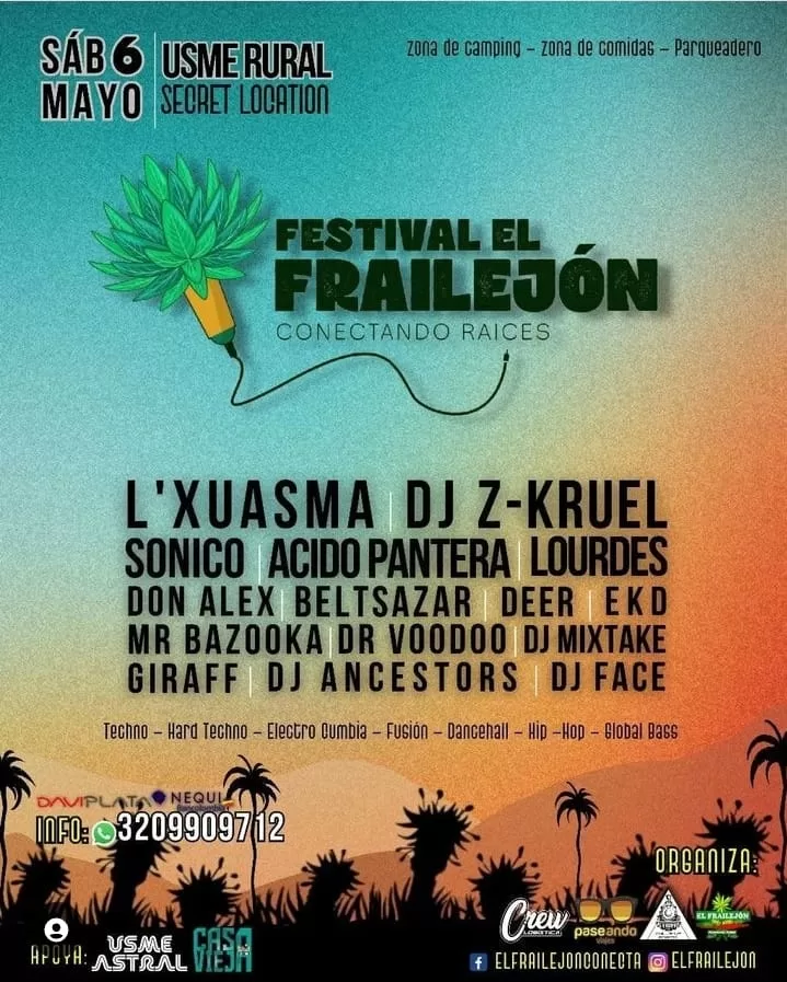Este 6 de mayo el rapero cartagenero, L’xuasma, uno de los mc´s con mayor proyección de la escena underground colombiana, será el plato fuerte del Festival El Frailejón en la localidad de Usme. Un evento que se llevará a cabo en una zona secreta cerca al páramo de Sumapaz, junto a los artistas Dj Z-Kruel, Sonico, Ácido Pantera, Lourdes, Giraff y muchos artistas más.