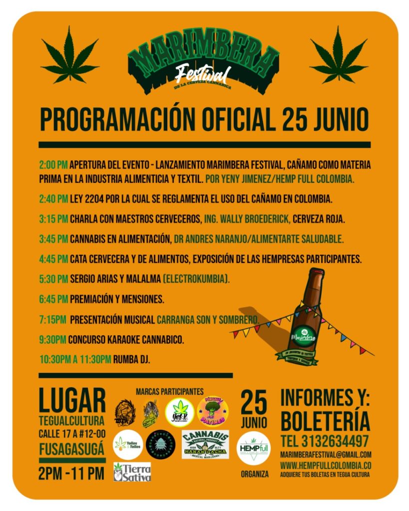 El Festival Marimbera, que reúne empresas que desarrollan cervezas, alimentos no psicoactivos y ropa a base del grano de marihuana, llega a Fusagasugá este 25 de junio. Charlas, catas de cerveza y varios conciertos, son algunos de los eventos que se podrán disfrutar.