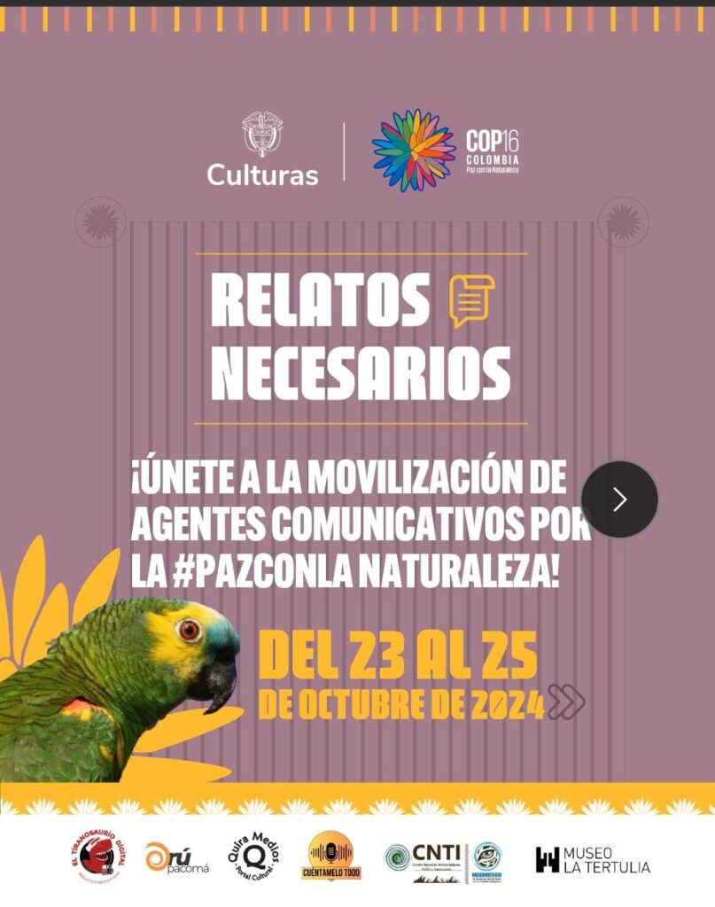 Este 25 de octubre entre las dos y las cuatro de la tarde se realizará en Cali la Mesa Redonda Relatos Necesarios ¿Qué encontramos durante la movilización de agentes comunicativos en la COP 16? Una invitación a cinco medios comunitarios de Colombi, para hablar sobre periodismo local en la Cumbre de Biodiversidad –COP16–.