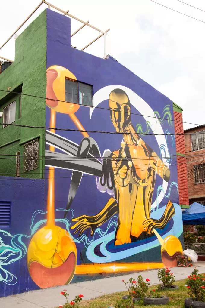 Esta obra se realizó gracias a una beca que ganó Adex a través de una invitación pública del Museo a Cielo Abierto de Bogotá (MAB), con una financiación de 38 millones de pesos.