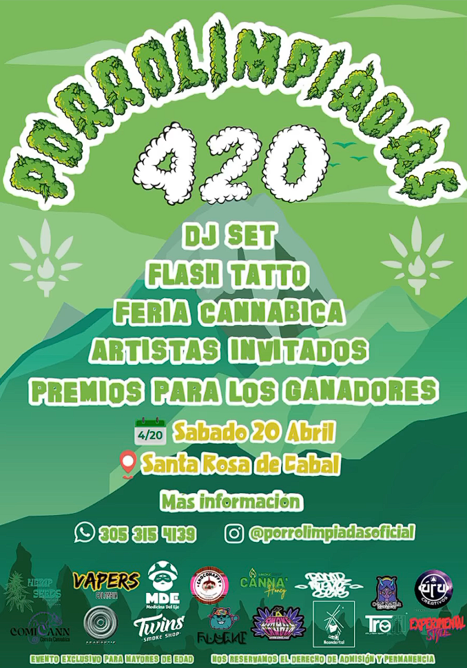 Este 20 de abril se celebrará en Santa Rosa de Cabal las Porrolimpiadas, una competencia que busca encontrar al mejor arquitecto cannábico. Pintura en vivo, música, rifas, insumos para cultivo y parafernalia, serán algunas de las sorpresas para celebrar este 420 en ete hermoso municipio de Risaralda.