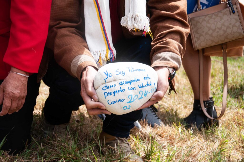 Algunas víctimas pusieron mensajes de paz y reconciliación en piedras, que posteriormente servirían para comenzar con el acto inaugural. Foto: Elver Aguja – El Tiranosaurio Digital.