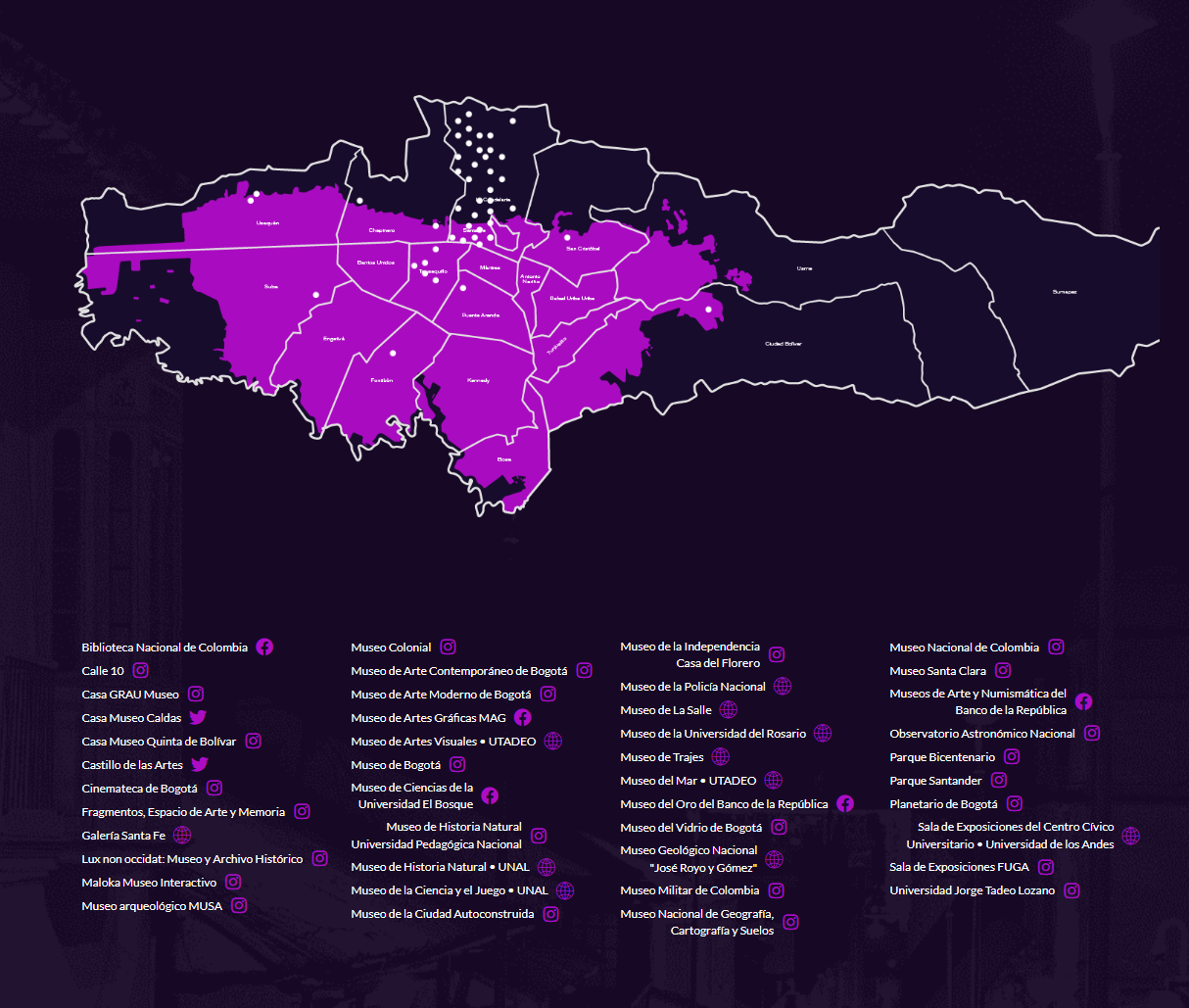La Noche de Museos nació en noviembre de 2021 como una iniciativa de la Mesa de Museos de Bogotá (MMB) que buscó fortalecer el sector a partir de la solidaridad, la creatividad, el relacionamiento con nuevos públicos y la dinamización de la oferta cultural urbana, por medio de la promoción de una agenda nocturna. Y contó con la asistencia de más de 28,000 personas.