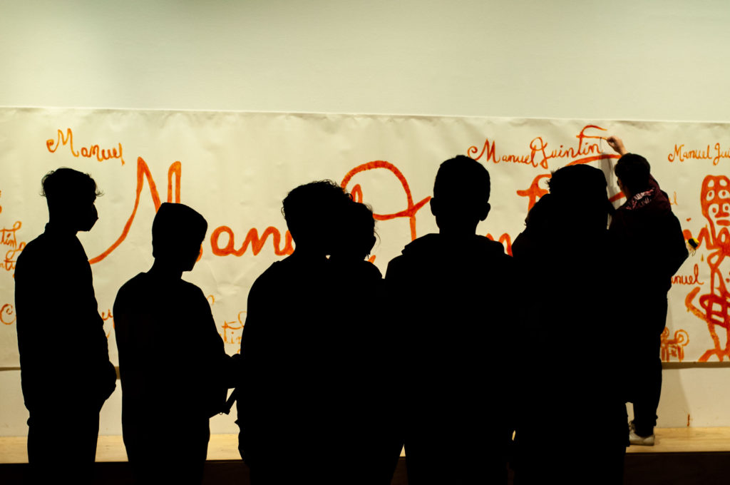 Caro reprodujo en varias ocasiones y en distintos formatos la firma del líder indígena Manuel Quintín Lame, quien, a partir de su formación autodidacta como abogado, defendió a su comunidad de la expropiación de tierras. A menudo el artista mencionaba: “Quintín Lame es mi mejor trabajo, no tanto por mí, sino por él”. Por esa razón, se invita a los visitantes a repetir el gesto de Caro para rendirle un homenaje a su mejor obra.