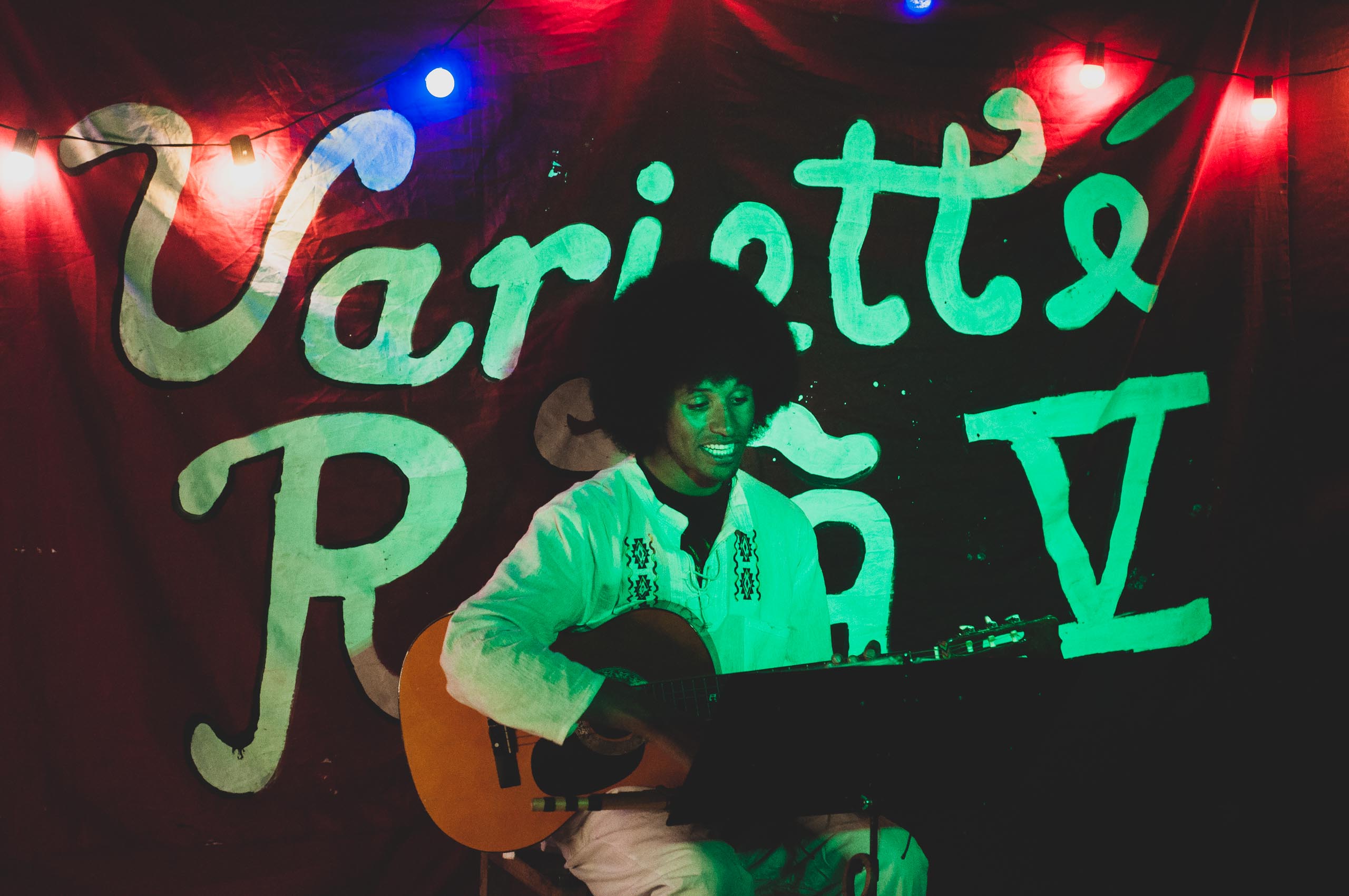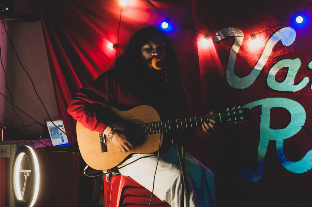 Y para finalizar la Variette, el talento de Adolfo C. Un músico local y maestro itinerante con más de 10 años experiencia en la escena musical, quien interpretó algunos de sus temas, que mezclan géneros colombianos con rock y punk.