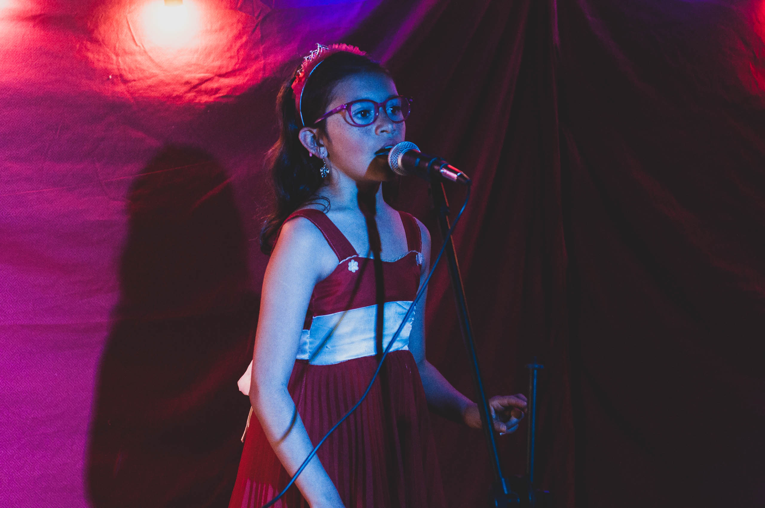 Al fondo está Sharick Valentina Quevedo alistándose para cantar. Fotos: Vidal Romero.